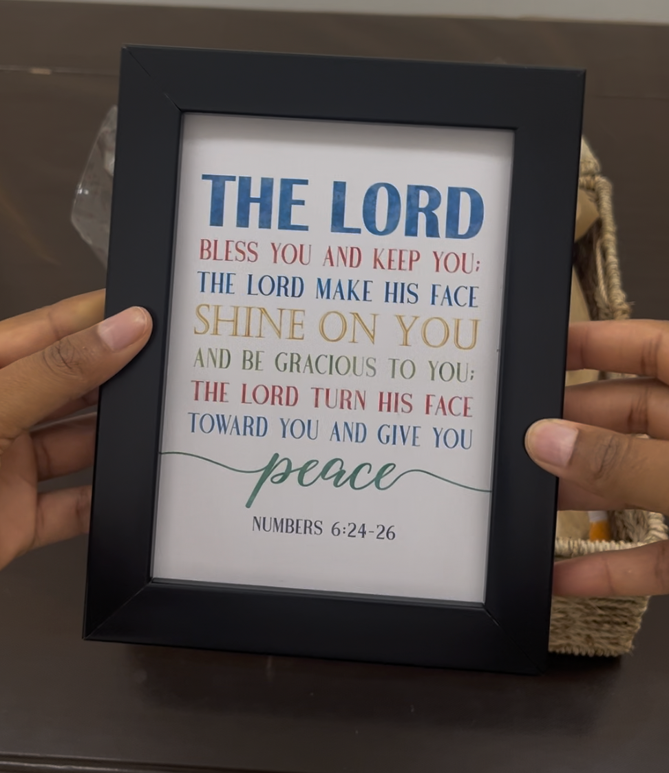 Prayer Desk Frame: A framed print featuring a powerful scripture, like the Aaronic Blessing (Numbers 6:24-26), to serve as an inspirational piece of home decor.